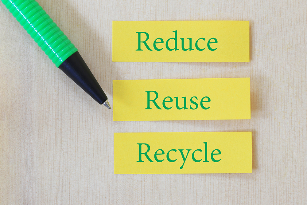 製品の製造時に発生する資源やゴミの量を抑制すること。同じ製品を長く使い続けるために定期的に手入れをすることや耐久性の高い商品を開発・製造することもリデュースにあたります。
