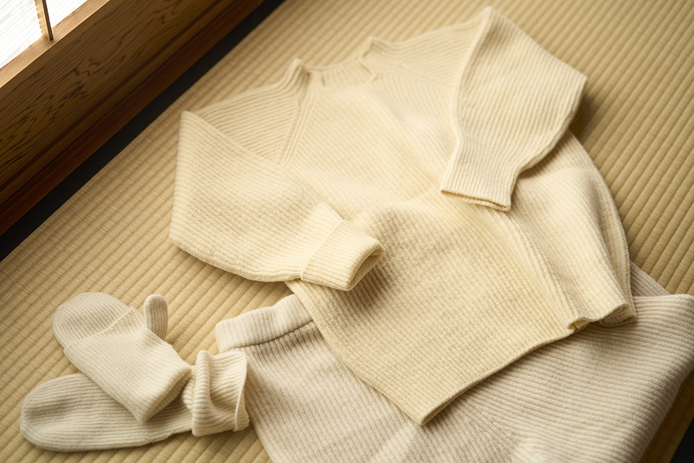 「家庭用だと制限もあり、いずれは工業用へと思っていました。そんな中、紹介していただいた和歌山の工場をとても気に入り、ひと月ほど和歌山に住んで毎日工場へ通い、製作の様子を学ばせていただきました。そこでは職人さんたちが命を燃やしながらものづくりに励んでおられ、そういう現場に触れたことで、より一緒に仕事がしたいという気持ちが強くなりました。ニット製品において、デザイナーとニット職人は一心同体。職人さんが編み型を作ってくださることで作品が完成します。心が通い合っていないと思い通りのものは作れません。ここだ、と思える工場や職人さんたちと出会えたことがきっかけで、何より大きな財産です」